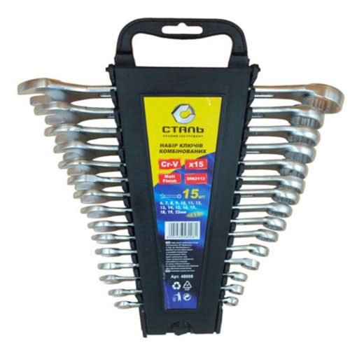 Набір ключів 15 предметів 6-22MM рожково-накідний СТАЛЬ пластик