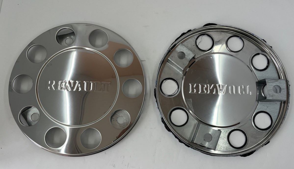 Ковпак колісний залізний нержавійка10 отворів закритий 22,5 з надписом RENAULT (3-точки кріплення)