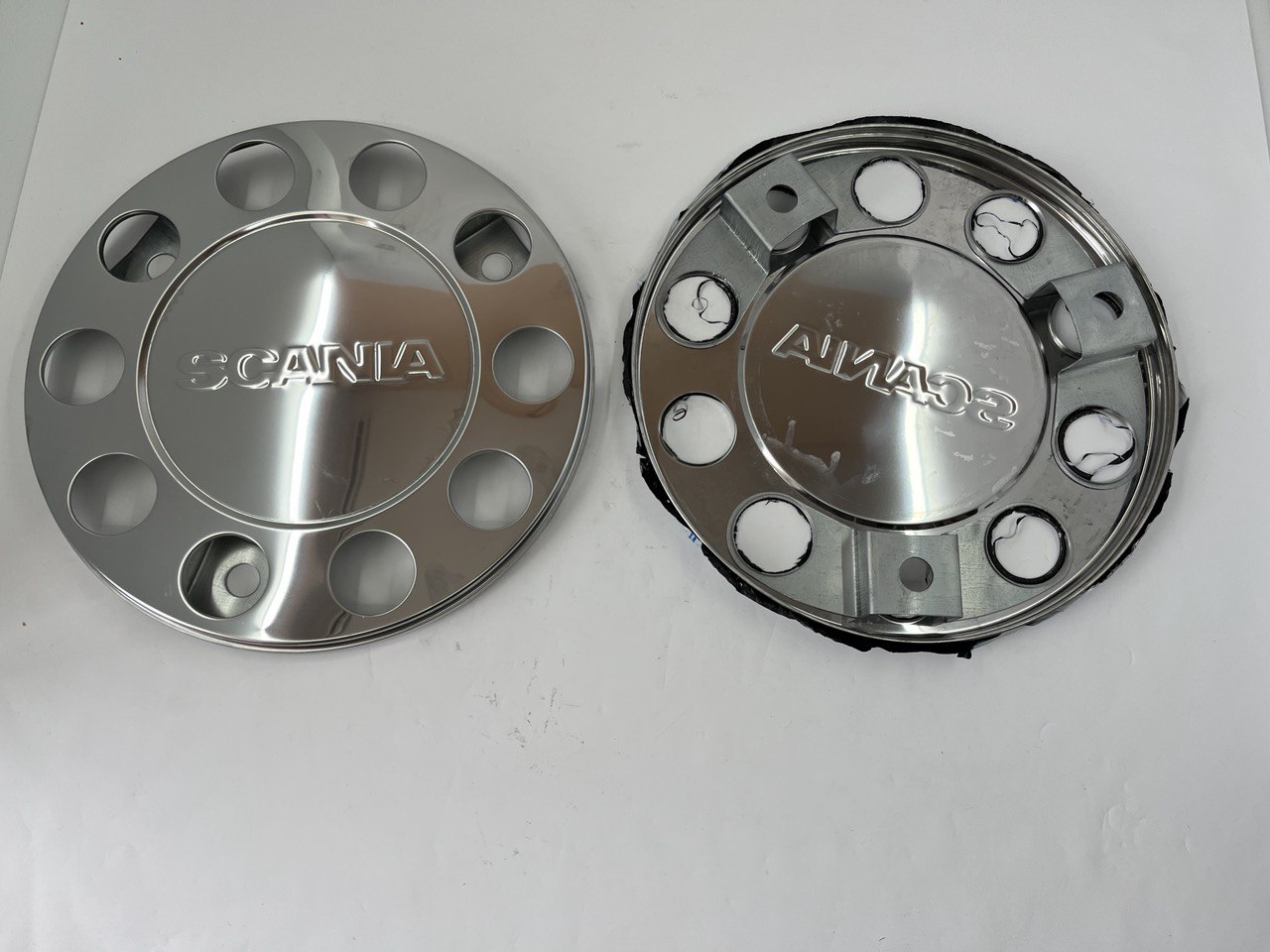 Ковпак колісний залізний нержавійка10 отворів закритий 22,5 з надписом SCANIA (3-точки кріплення)
